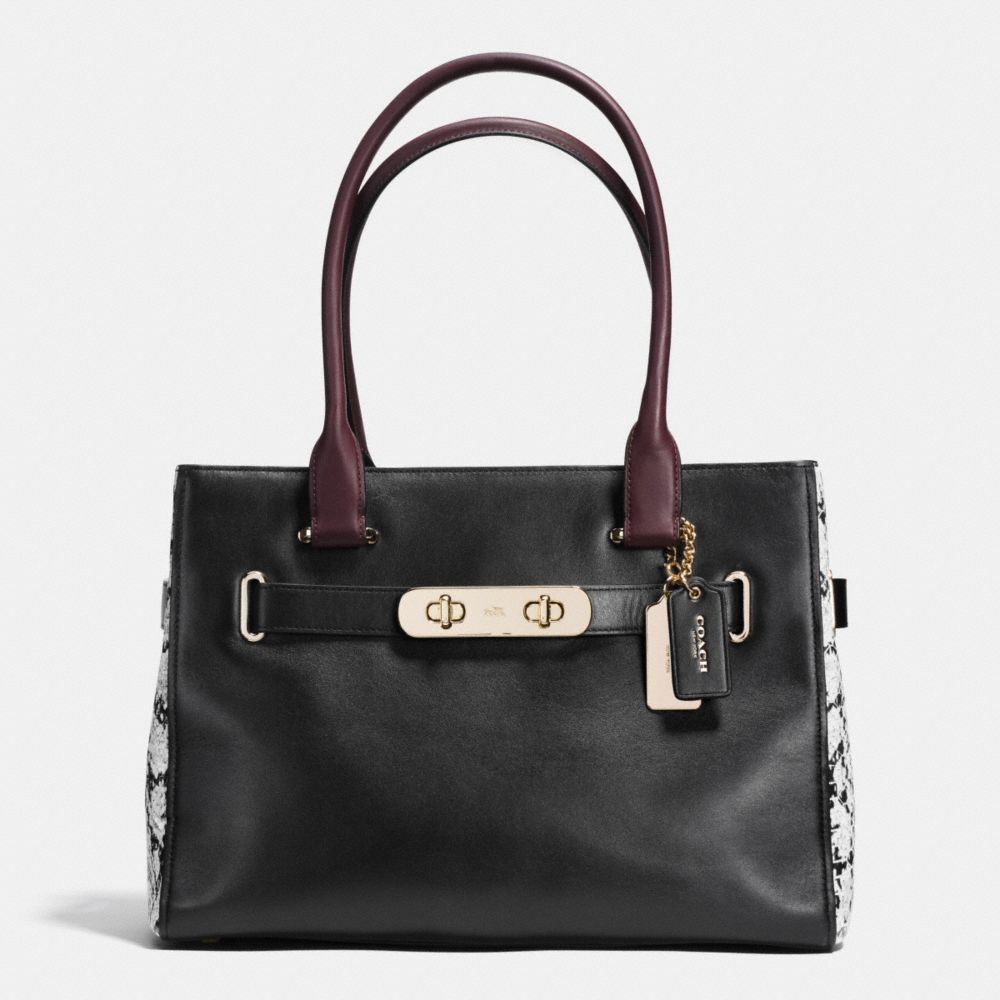 COACH F36498 COACH SWAGGER CARRYALL IN COLORBLOCK EXOTIC EMBOSSED LEATHER LIGHT-GOLD/BLACK HANDBAGS