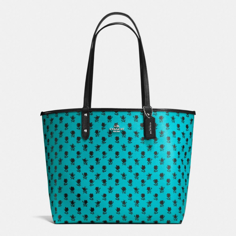 1. COACH f55863 - REVERSIBLE CITY TOTE IN BADLANDS FLORAL PRINT CANVAS - SILVER/TURQUOISE MULTI BLACK