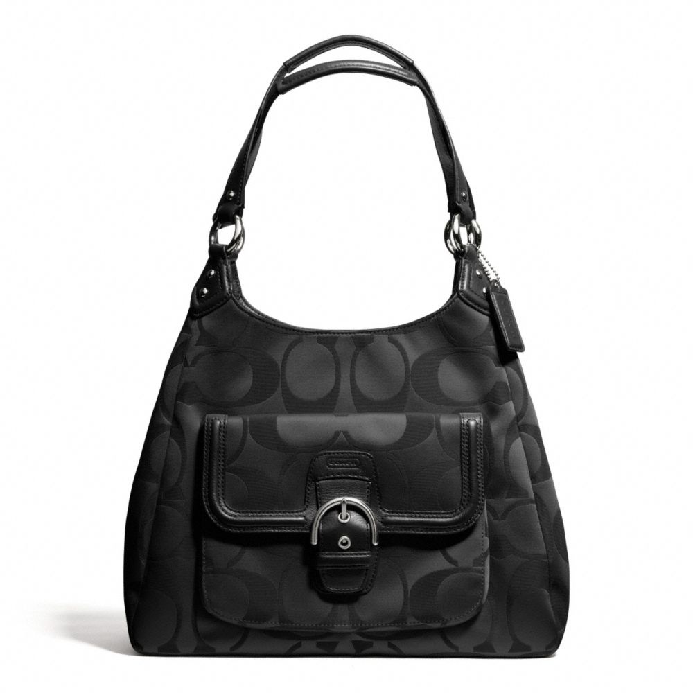 COACH F24742 CAMPBELL SIGNATURE HOBO SILVER/BLACK HANDBAGS