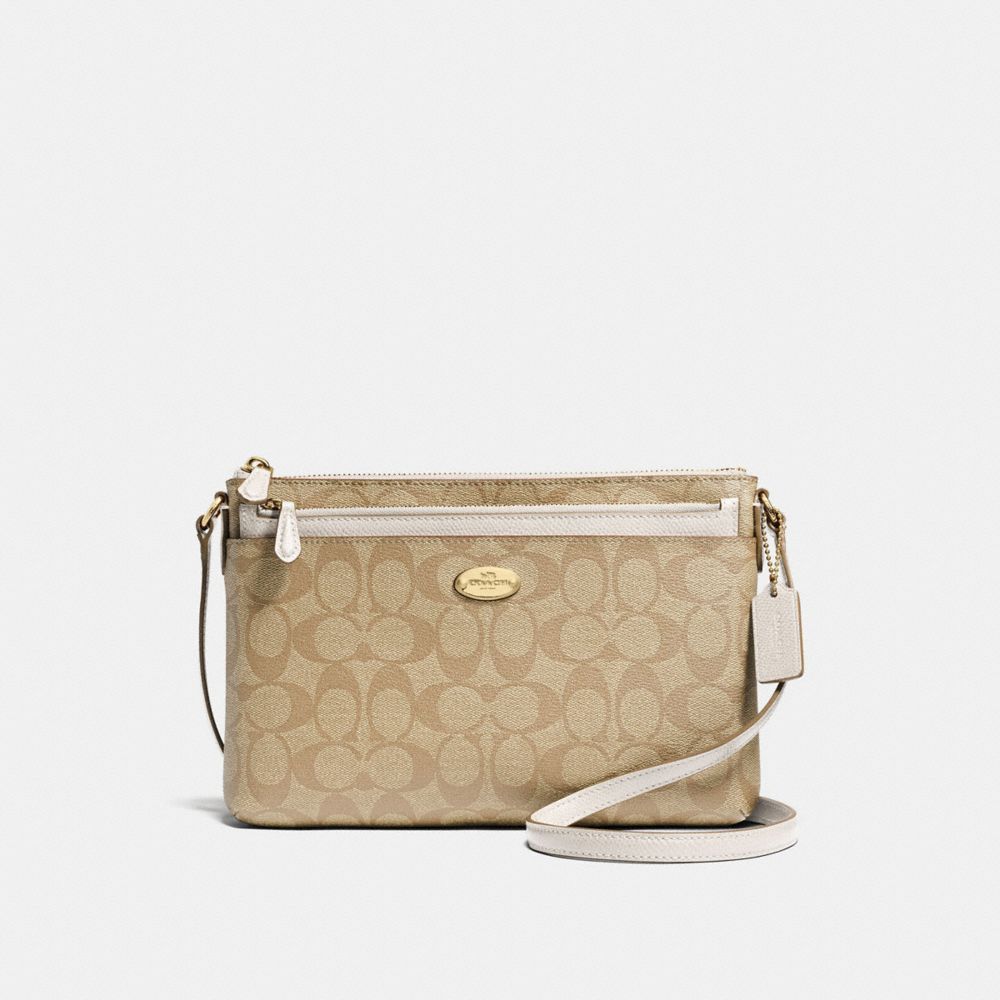 COACH F58316 - EAST/WEST CROSSBODY WITH POP UP POUCH IN SIGNATURE - IMITATION-GOLD/LIGHT-KHAKI/CHALK - HANDBAGS