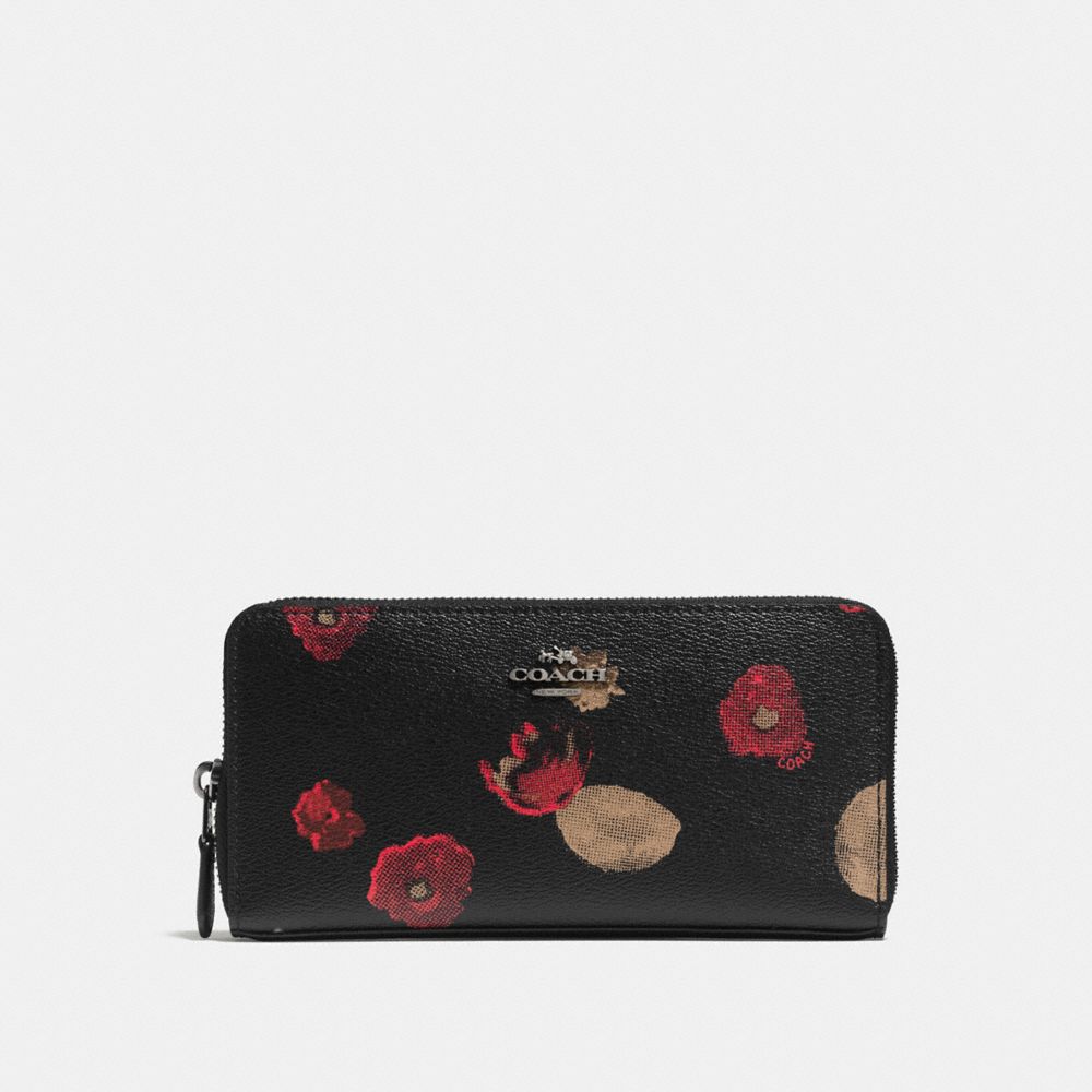 1. COACH f55950 - ACCORDION ZIP WALLET IN HALFTONE FLORAL PRINT COATED CANVAS - ANTIQUE NICKEL/BLACK MULTI