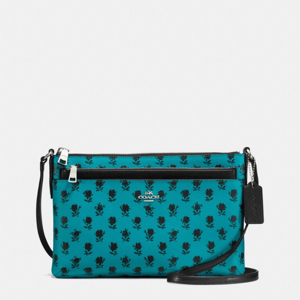 1. COACH f38159 - EAST/WEST CROSSBODY WITH POP UP POUCH IN BADLANDS FLORAL PRINT COATED CANVAS - SILVER/TURQUOISE BLACK