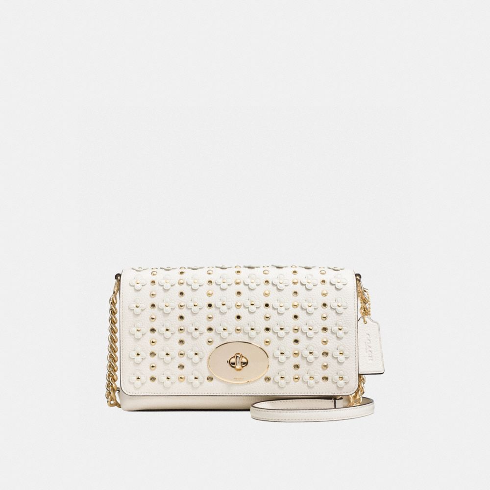 COACH F37704 - CROSSTOWN CROSSBODY IN FLORAL RIVETS LEATHER - LIGHT GOLD/CHALK (click the link before for more detail)