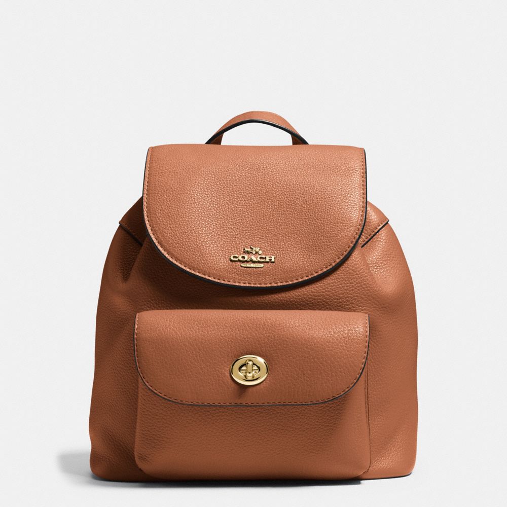 1. COACH f37621 - MINI BILLIE BACKPACK IN PEBBLE LEATHER - IMITATION GOLD/SADDLE