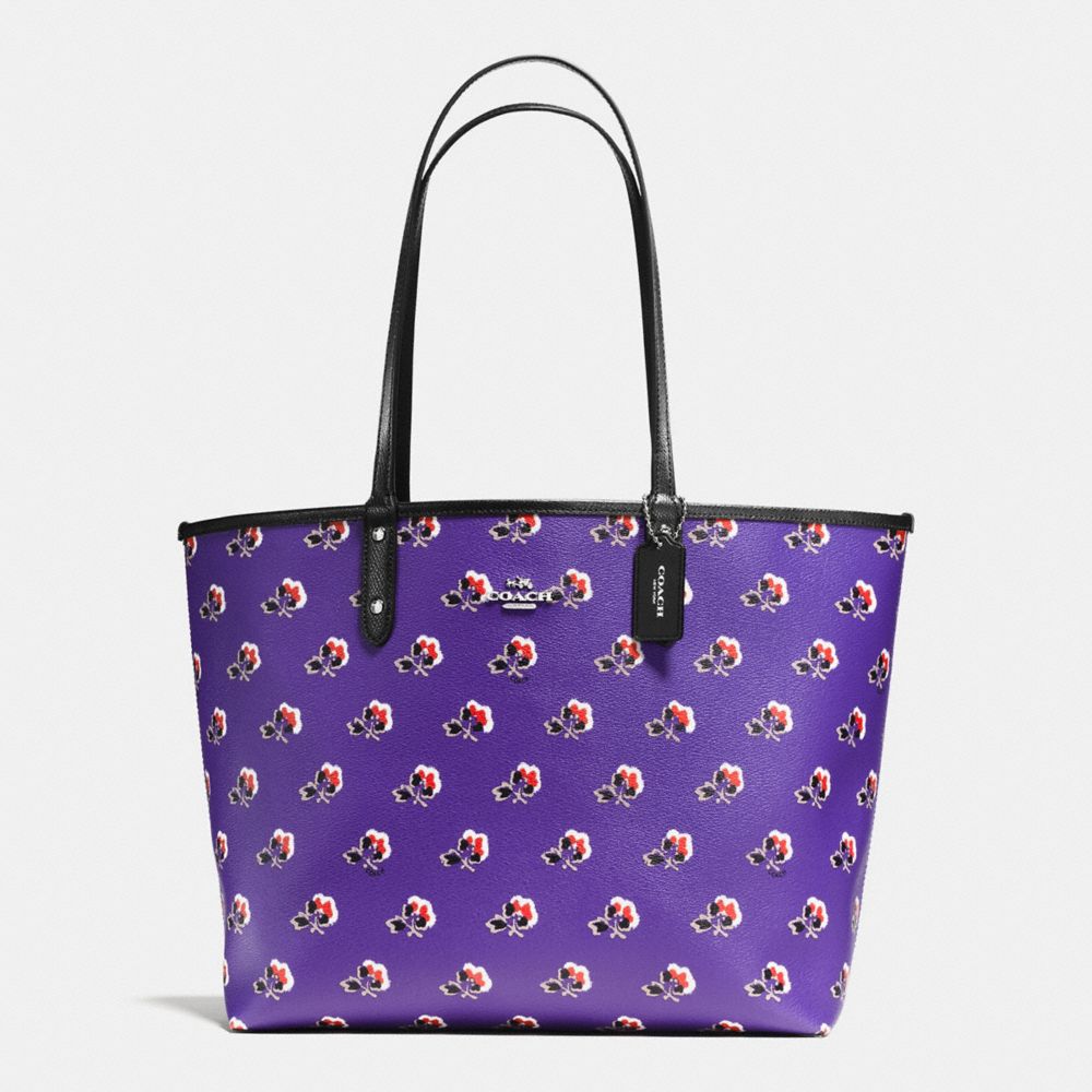 1. COACH f55866 - REVERSIBLE CITY TOTE IN BRAMBLE ROSE FLORAL PRINT CANVAS - SILVER/PURPLE MULTI BLACK