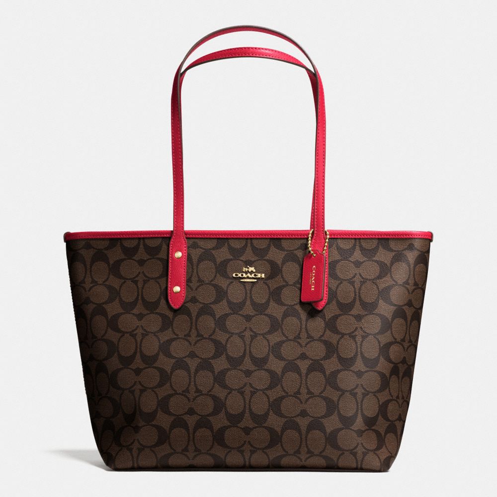 1. COACH f36876 - CITY ZIP TOTE IN SIGNATURE - IMITATION GOLD/BROW TRUE RED