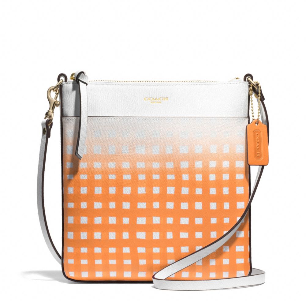 COACH F51632 GINGHAM SAFFIANO NORTH/SOUTH SWINGPACK LIGHT-GOLD/WHITE/BRIGHT-MANDARIN HANDBAGS