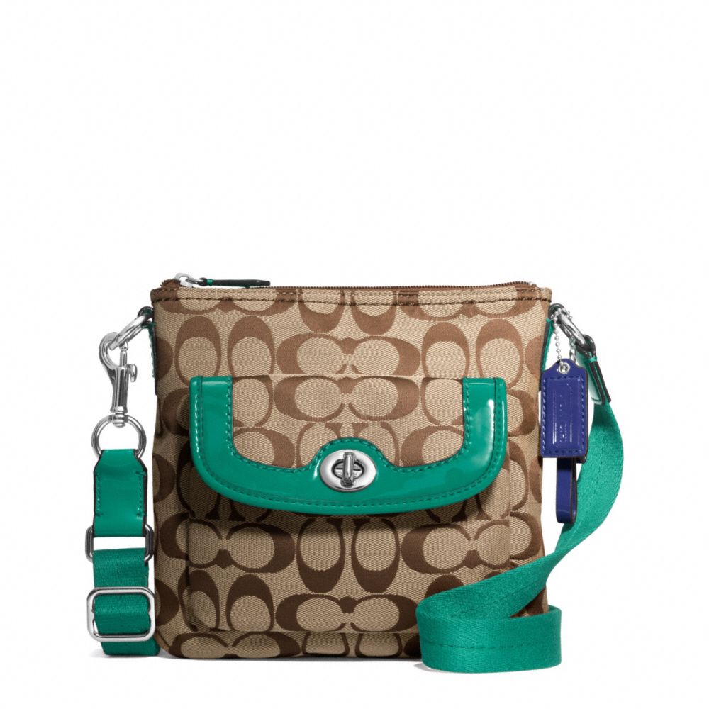 COACH F49148 - PARK SIGNATURE SWINGPACK - SILVER/KHAKI/BRIGHT JADE (click the link before for more detail)