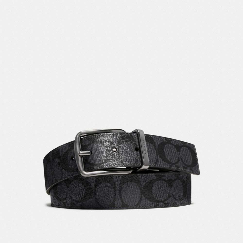 1. COACH f64839 - WIDE HARNESS CUT-TO-SIZE REVERSIBLE SIGNATURE COATED CANVAS BELT - CHARCOAL/BLACK