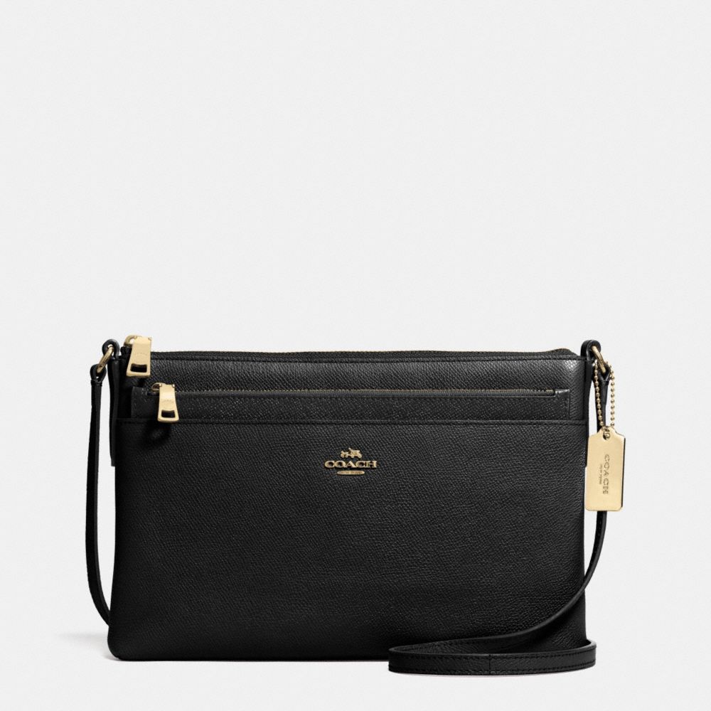 COACH F52377 SWINGPACK WITH POP-UP POUCH IN EMBOSSED TEXTURED LEATHER LIGHT-GOLD/BLACK HANDBAGS