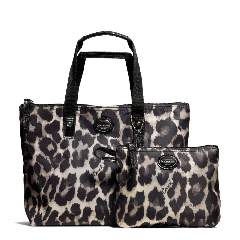 COACH F77442 GETAWAY OCELOT PRINT SMALL PACKABLE TOTE SILVER/BLACK-MULTI HANDBAGS