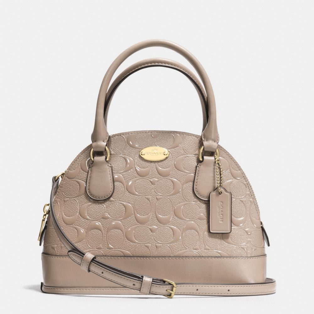 COACH F35279 - MINI CORA DOMED SATCHEL IN DEBOSSED PATENT LEATHER - LIGHT GOLD/STONE (click the link before for more detail)