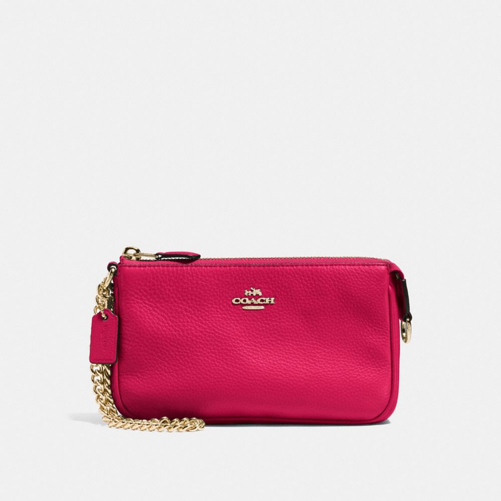1. COACH f53340 - LARGE WRISTLET 19 IN PEBBLE LEATHER - IMITATION GOLD/BRIGHT PINK