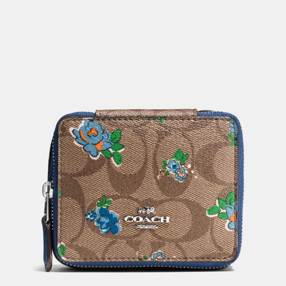 1. COACH f57589 - JEWELRY BOX IN FLORAL LOGO PRINT - SILVER/KHAKI BLUE MULTI