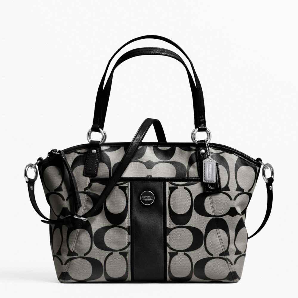 COACH F21899 - SIGNATURE STRIPE POCKET TOTE - SILVER/BLACK/WHITE/BLACK (click the link before for more detail)