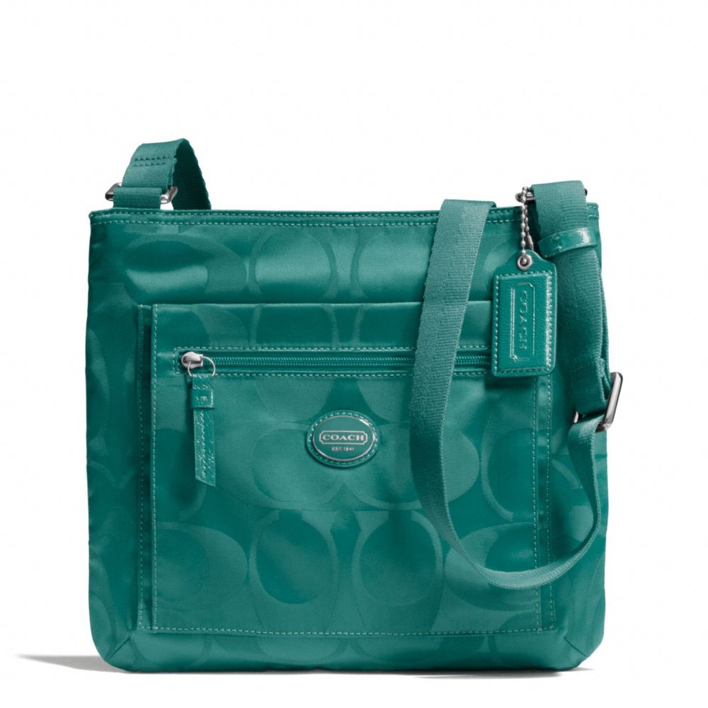 COACH F77408 GETAWAY SIGNATURE NYLON FILE BAG SILVER/MINERAL HANDBAGS