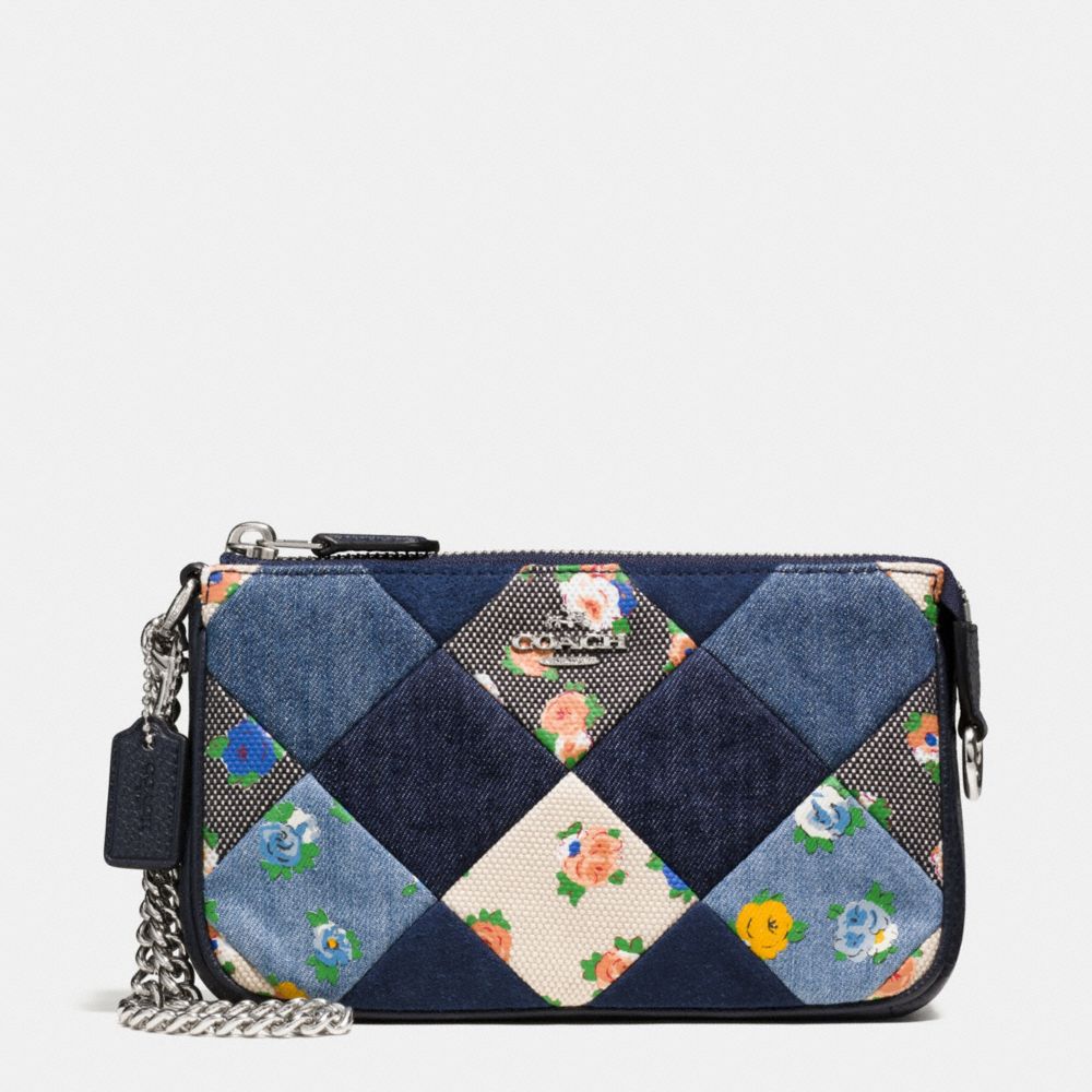 1. COACH f57609 - LARGE WRISTLET 19 IN DENIM PATCHWORK - SILVER/MIDNIGHT MULTI