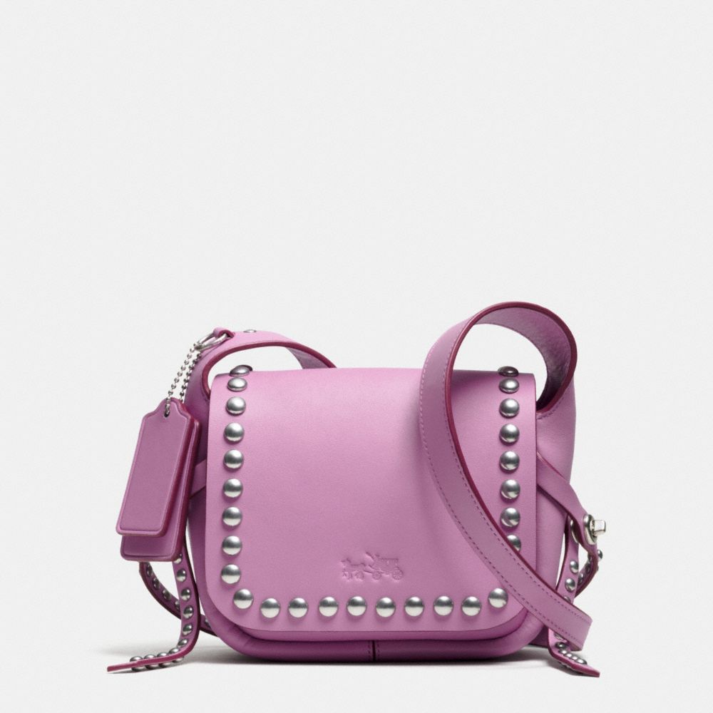 COACH F35751 RIVETS DAKOTAH 14 CROSSBODY IN CALF LEATHER WARM-ROLLER-NICKEL/PUCE HANDBAGS