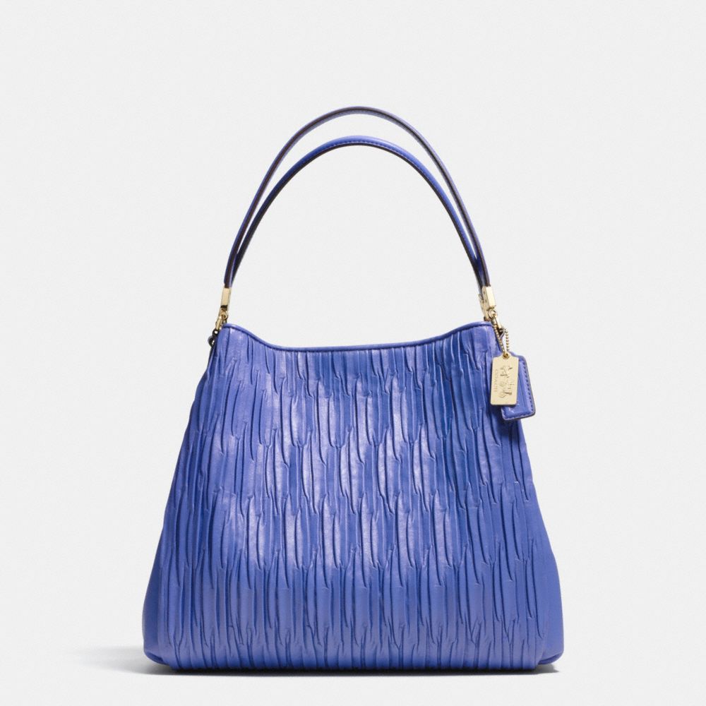 COACH F30083 MADISON GATHERED LEATHER SMALL PHOEBE SHOULDER BAG -LIGHT-GOLD/PORCELAIN-BLUE HANDBAGS