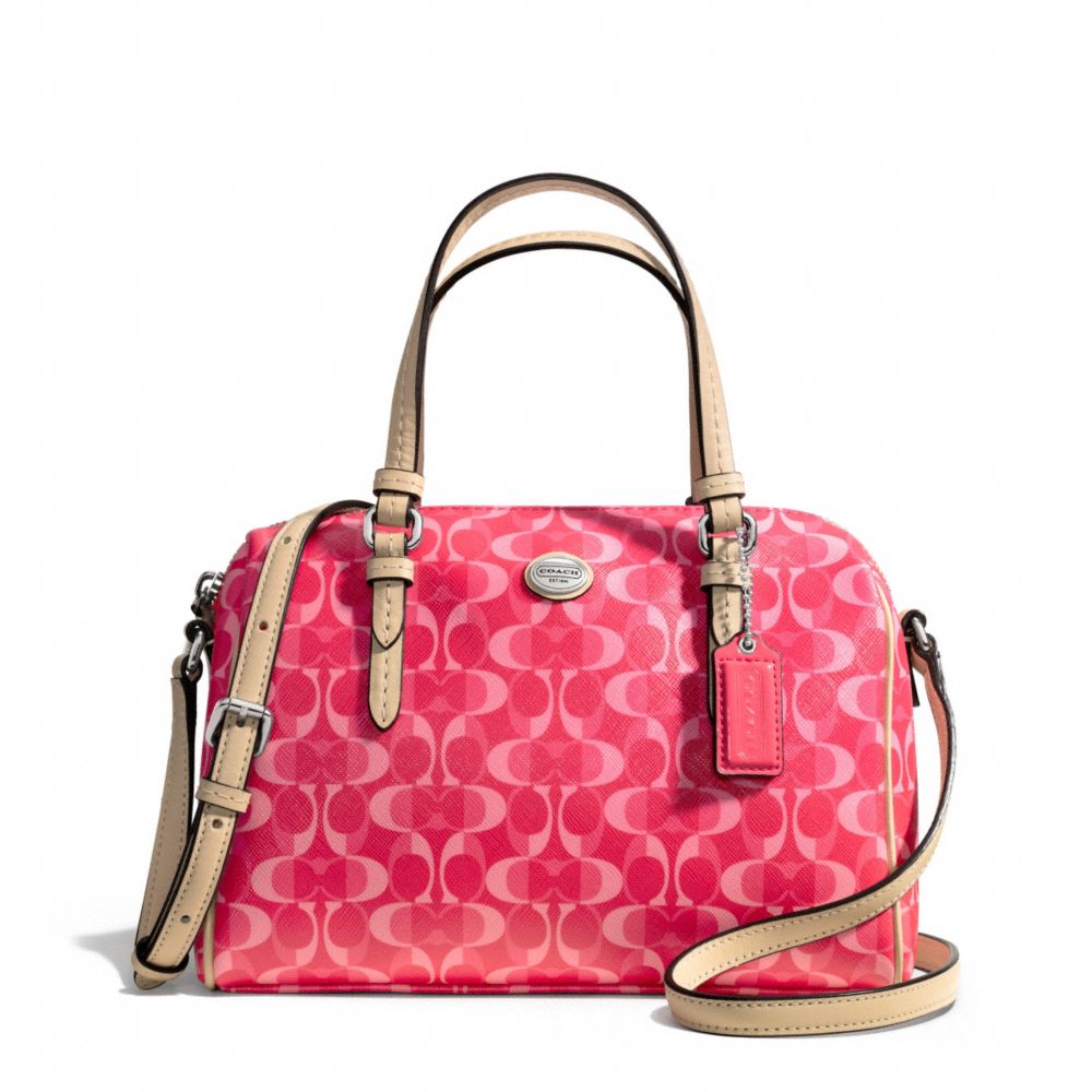COACH F50093 - PEYTON DREAM C BENNETT MINI SATCHEL - SILVER/BRIGHT CORAL/TAN (click the link before for more detail)