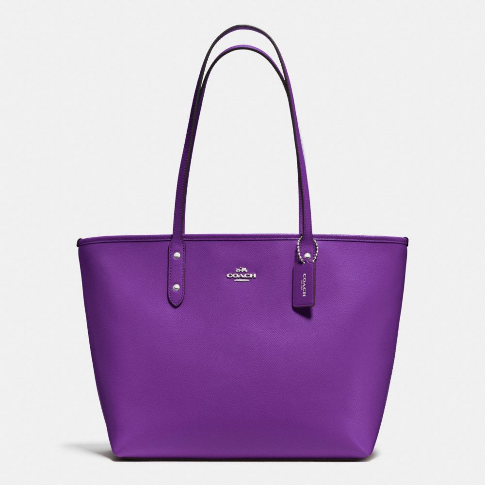 COACH F37785 CITY ZIP TOTE IN CROSSGRAIN LEATHER SILVER/PURPLE HANDBAGS