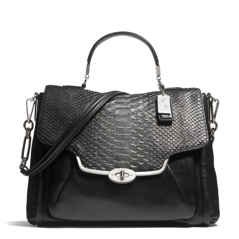 COACH F26338 - MADISON GLITTER PYTHON SADIE FLAP SATCHEL - SILVER/BLACK - HANDBAGS