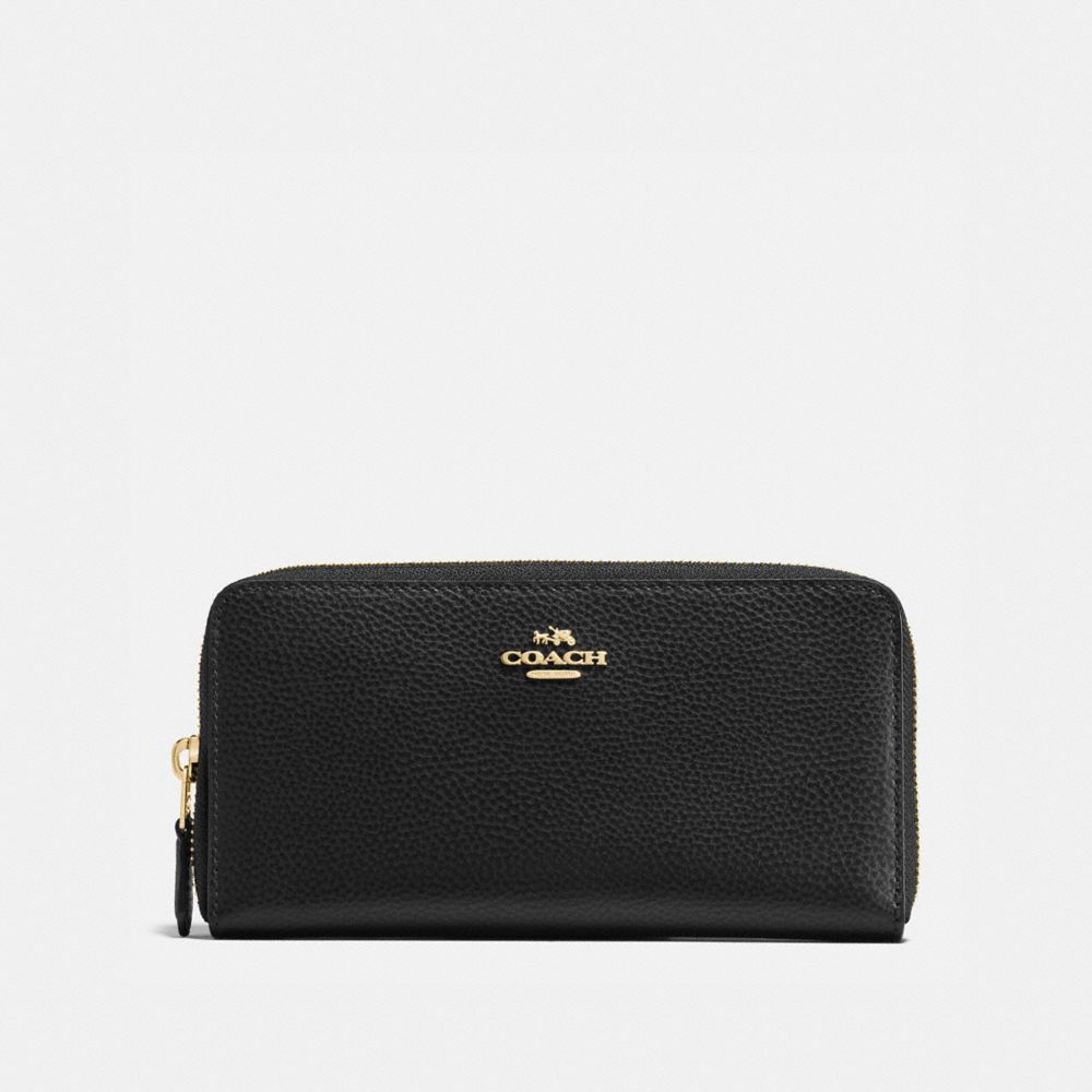 1. COACH f16612 - ACCORDION ZIP WALLET IN POLISHED PEBBLE LEATHER - IMITATION GOLD/BLACK