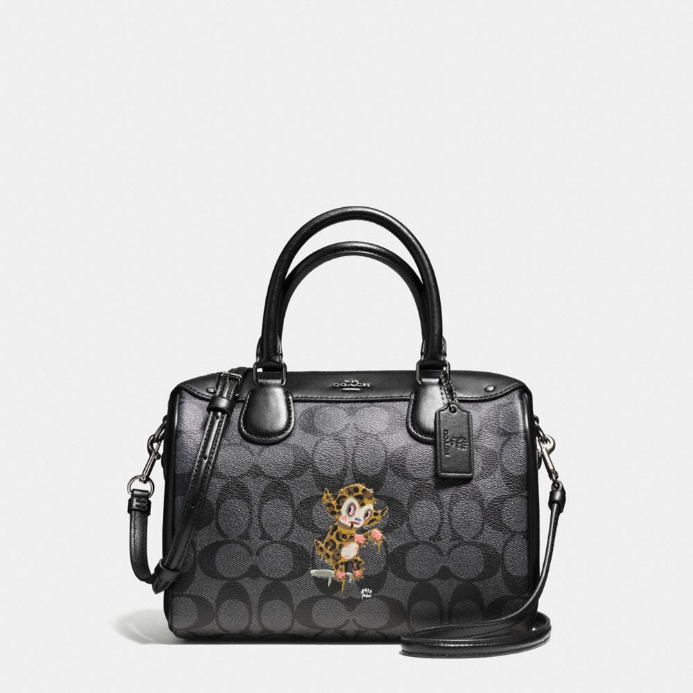 COACH F57907 - BASEMAN X COACH BUSTER MINI BENNETT SATCHEL IN SIGNATURE COATED CANVAS - ANTIQUE-SILVER/NICKEL - HANDBAGS