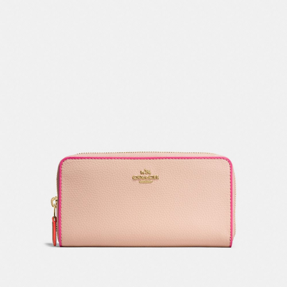 1. COACH f12585 - ACCORDION ZIP WALLET IN POLISHED PEBBLE LEATHER WITH MULTI EDGESTAIN - IMITATION GOLD/NUDE PINK MULTI