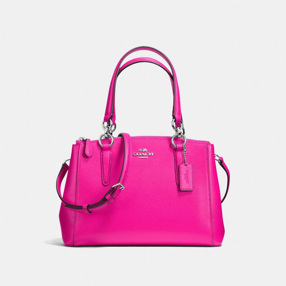 COACH F57523 - MINI CHRISTIE CARRYALL IN CROSSGRAIN LEATHER - SILVER/BRIGHT-FUCHSIA - HANDBAGS