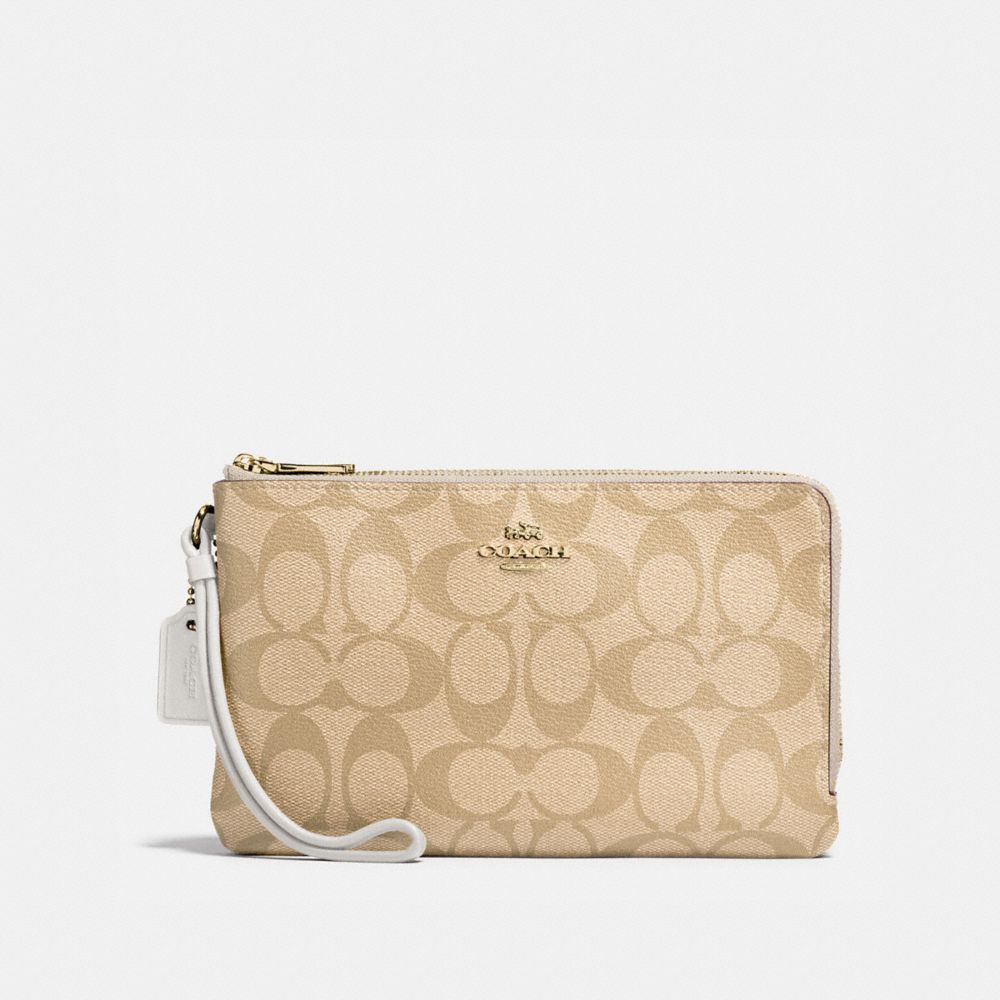 1. COACH f16109 - DOUBLE ZIP WALLET IN SIGNATURE COATED CANVAS - IMITATION GOLD/LIGHT KHAKI