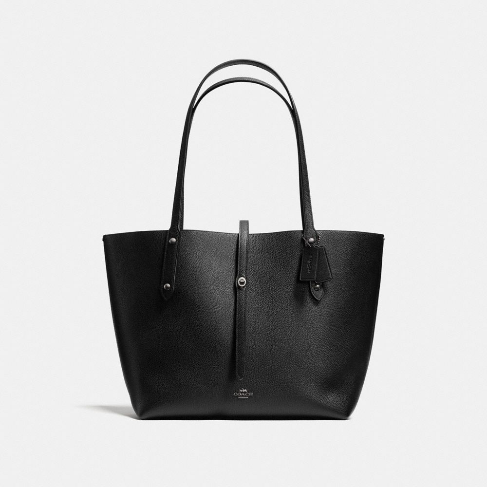 1. COACH f36315 - MARKET TOTE IN PEBBLE LEATHER WITH WILD BEAST PRINT - BLACK ANTIQUE NICKEL/BLACK