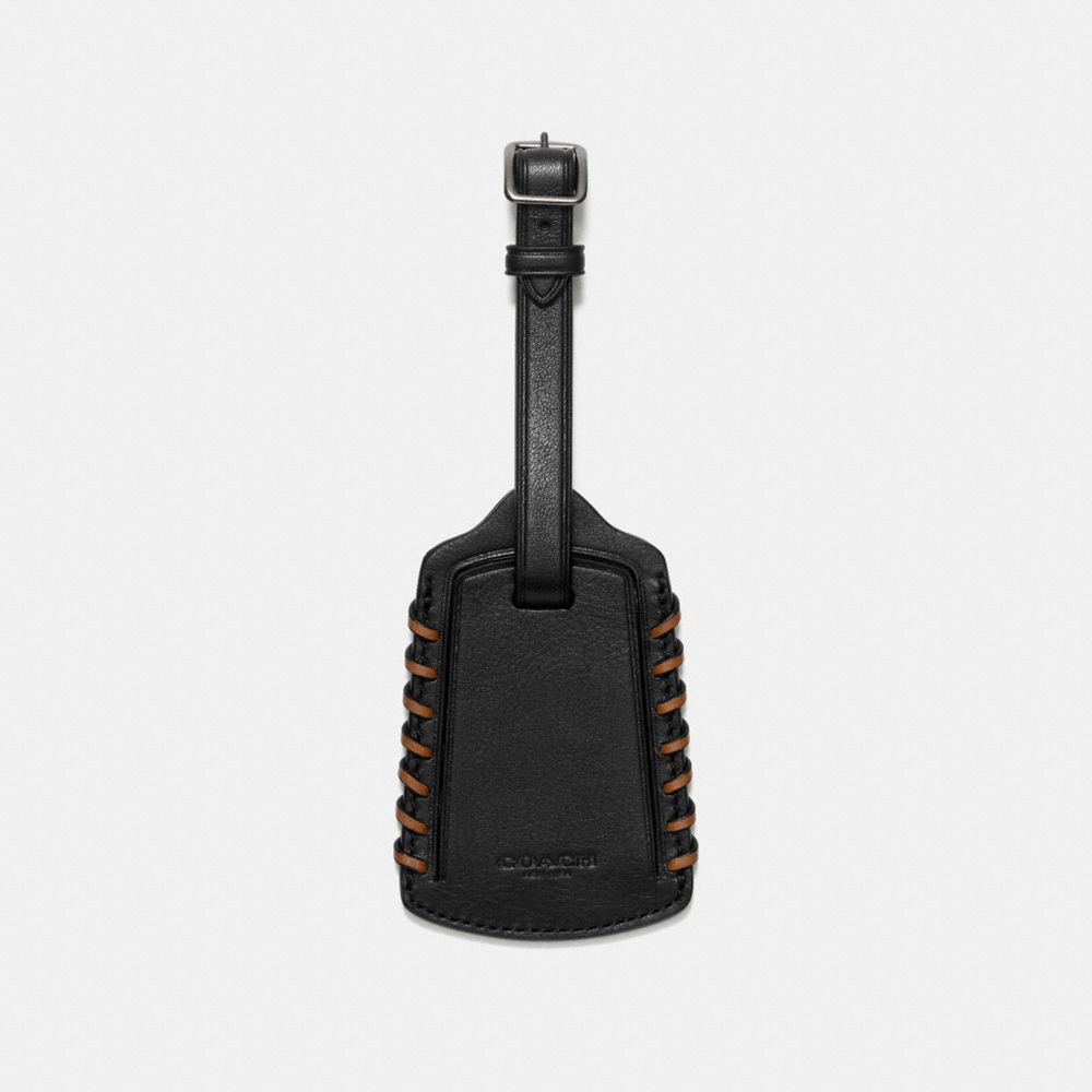 1. COACH f93545 - RIP AND REPAIR LUGGAGE TAG IN SPORT CALF LEATHER - BLACK/SADDLE