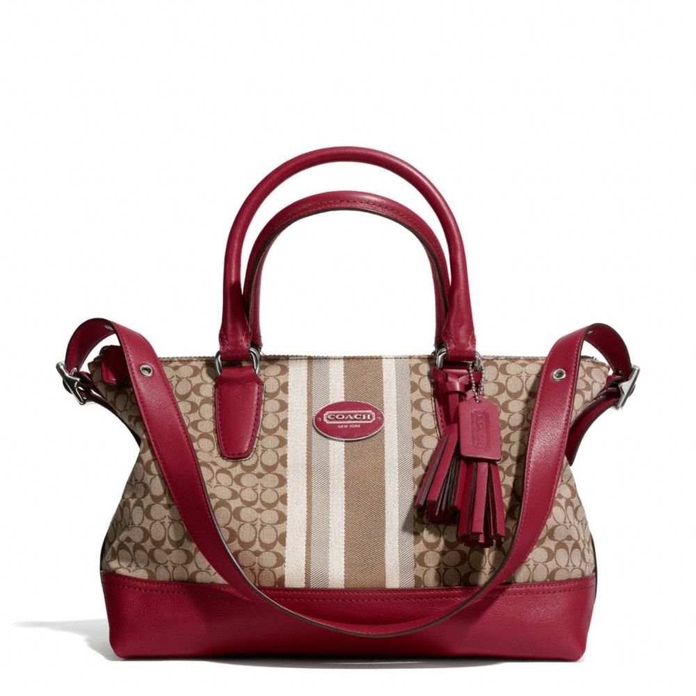 COACH F29622 SIGNATURE STRIPE EAST/WEST SATCHEL - SILVER/KHAKI/BLACK CHERRY(click the link before for more detail)