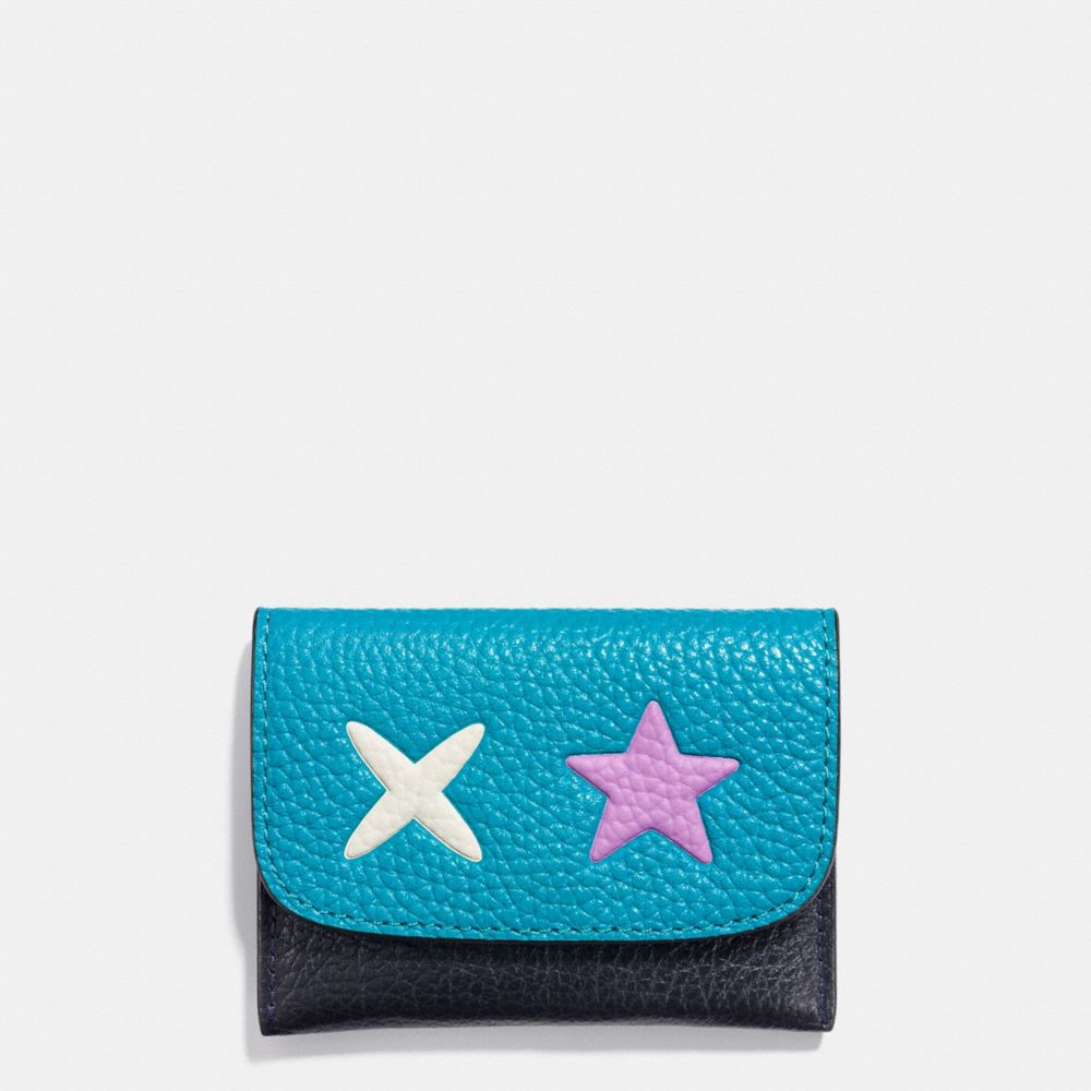 21. COACH f87219 - EYES CARD POUCH IN GLOVETANNED LEATHER - SILVER/MULTICOLOR 1