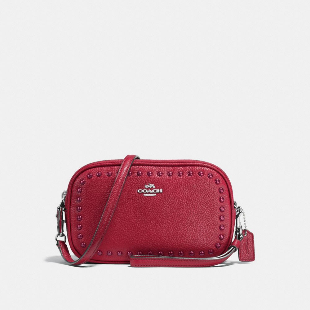 1. COACH f66154 - CROSSBODY CLUTCH IN PEBBLE LEATHER WITH LACQUER RIVETS - SILVER/RED CURRANT