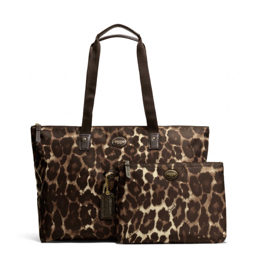 COACH F77405 GETAWAY OCELOT PRINT PACKABLE WEEKENDER BRASS/MAHOGANY-MULTI HANDBAGS
