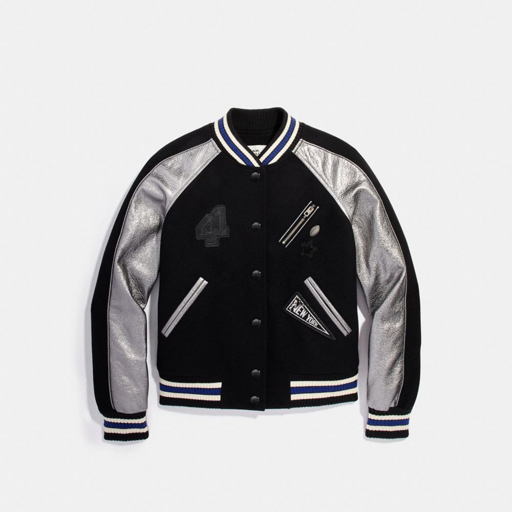 2. COACH f11800 - CITY ZIP TOTE IN SIGNATURE COATED CANVAS WITH VARSITY PATCHES - BLACK ANTIQUE NICKEL/BROWN