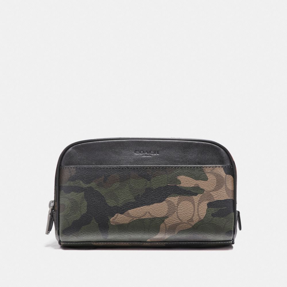 1. COACH f12008 - OVERNIGHT TRAVEL KIT IN SIGNATURE CAMO COATED CANVAS - MAHOGANY/DARK GREEN CAMO