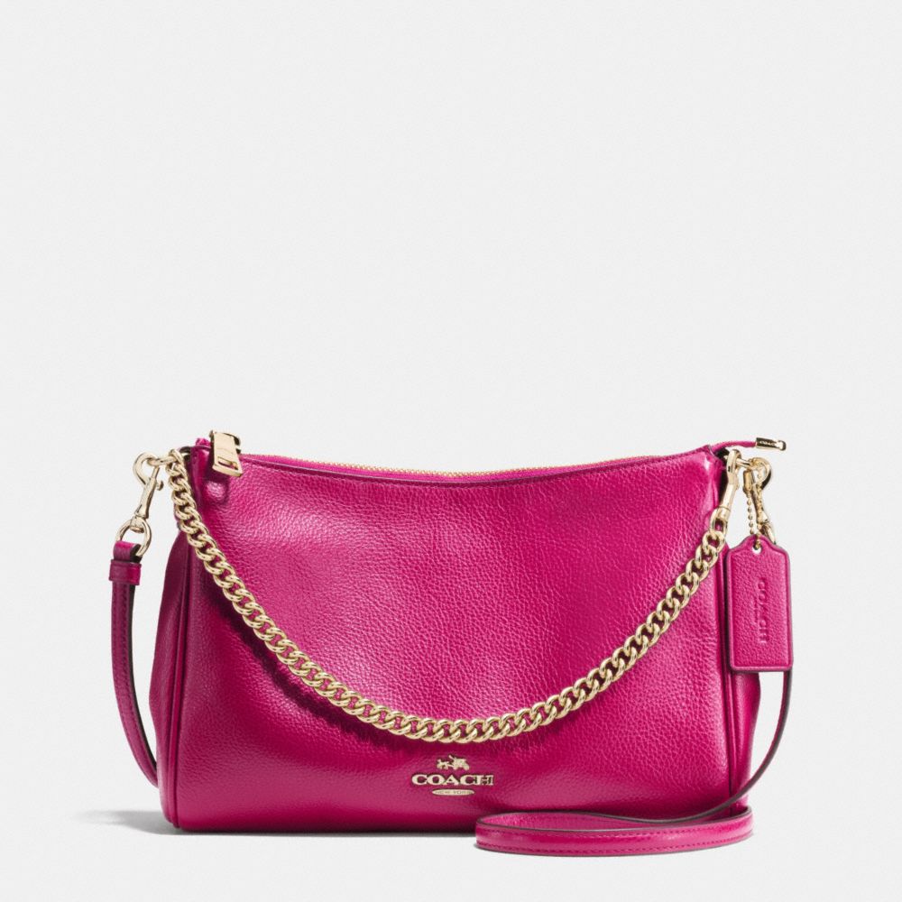 COACH F36666 CARRIE CROSSBODY IN PEBBLE LEATHER IMITATION-GOLD/CRANBERRY HANDBAGS