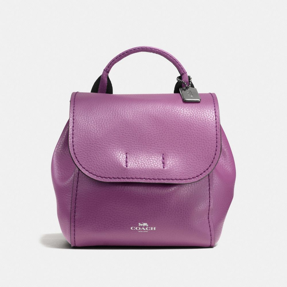 COACH F59401 DERBY BACKPACK IN PEBBLE LEATHER WITH STRIPE WEBBING BLACK-ANTIQUE-NICKEL/MAUVE HANDBAGS