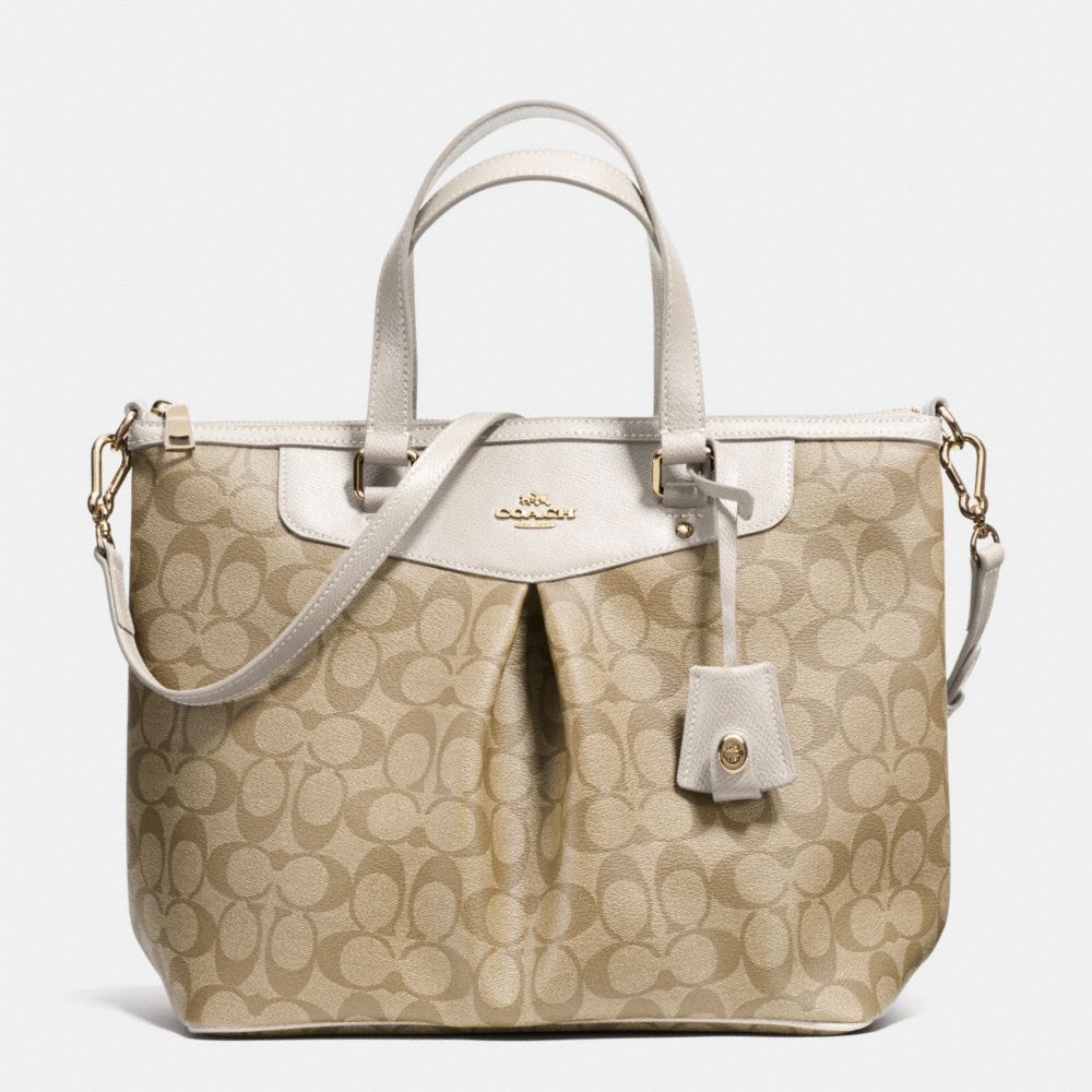 COACH F34614 PLEAT TOTE IN SIGNATURE CANVAS LIGHT-GOLD/LIGHT-KHAKI/CHALK HANDBAGS