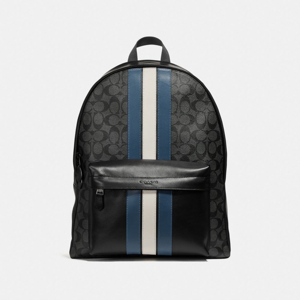 1. COACH f26066 - CHARLES BACKPACK IN SIGNATURE CANVAS WITH VARSITY STRIPE - MIDNIGHT NVY/DENIM/CHALK/BLACK ANTIQUE NICKEL