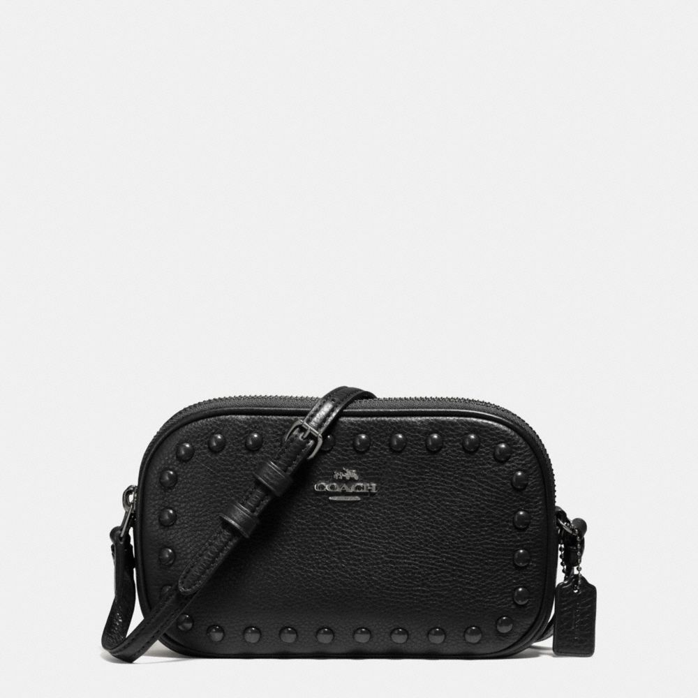 COACH F57587 - CROSSBODY POUCH WITH ENAMEL STUDS - ANTIQUE NICKEL/BLACK (click the link before for more detail)