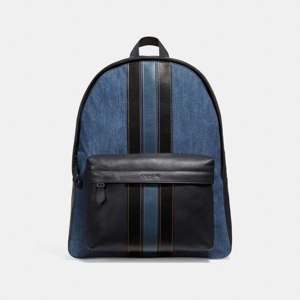 1. COACH f23218 - CHARLES BACKPACK WITH VARSITY STRIPE - DENIM/BLACK/DENIM/BLACK ANTIQUE NICKEL