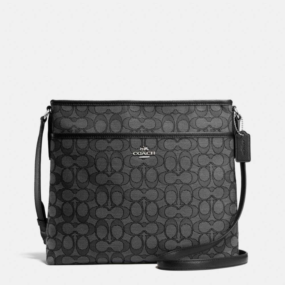 COACH F55363 - FILE BAG IN OUTLINE SIGNATURE - SILVER/BLACK-SMOKE/BLACK - HANDBAGS