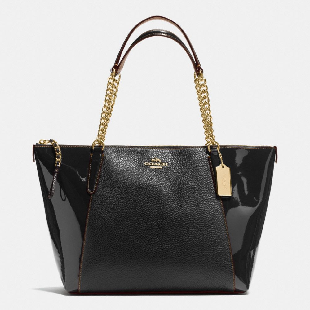 COACH F55443 AVA CHAIN TOTE IN PEBBLE AND PATENT LEATHERS - IMITATION GOLD/BLACK(click the link before for more detail)