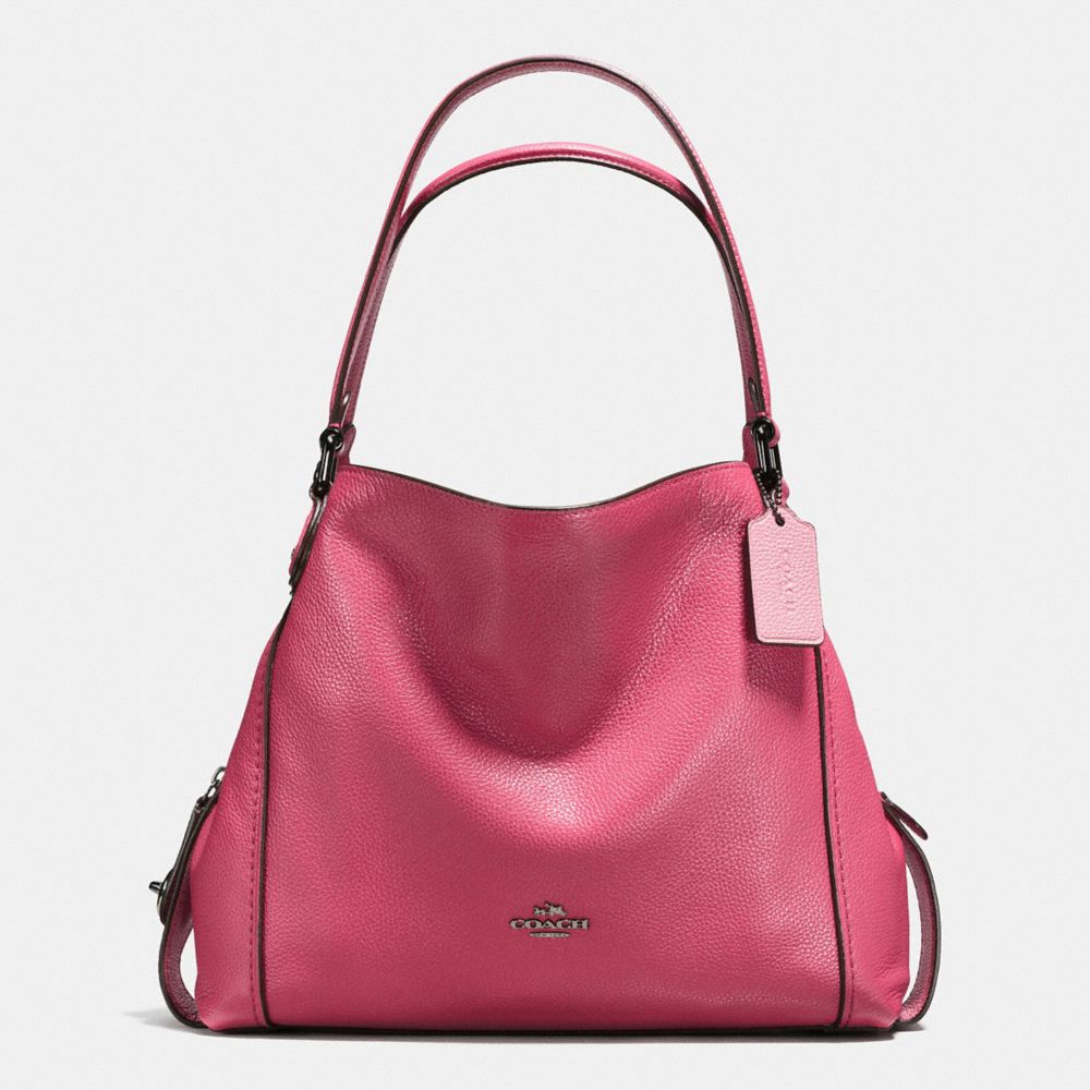 COACH F57125 - EDIE SHOULDER BAG 31 IN POLISHED PEBBLE LEATHER - DARK GUNMETAL/ROUGE (click the link before for more detail)