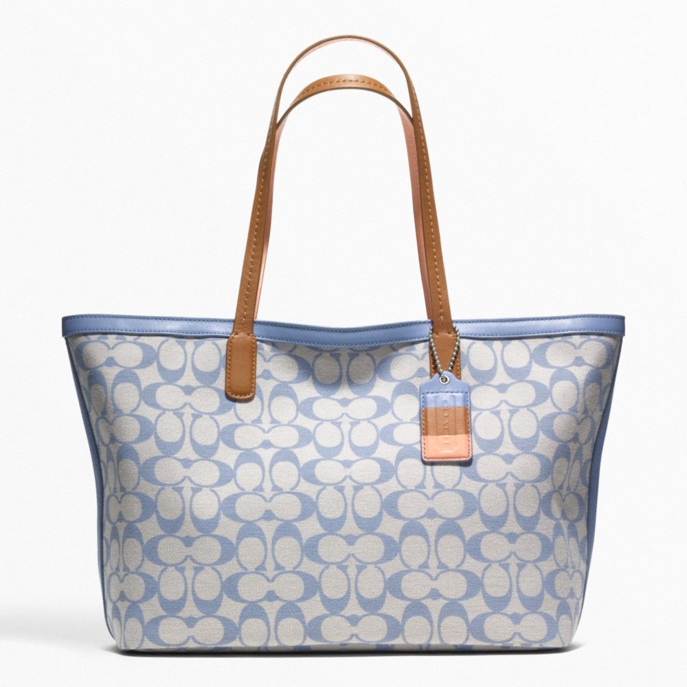 COACH F23107 - WEEKEND PRINTED SIGNATURE ZIP TOP TOTE - SILVER/GREY CHAMBRAY (click the link before for more detail)