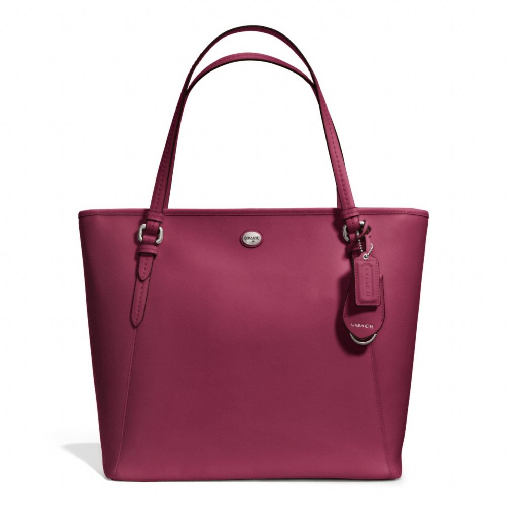 COACH F27349 - PEYTON LEATHER ZIP TOP TOTE - SILVER/MERLOT - HANDBAGS